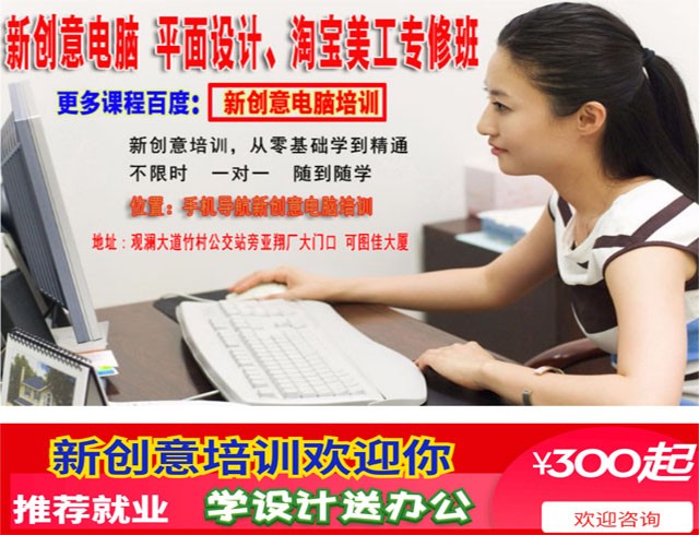 (电脑培训找观澜新创意培训,专业培训电脑办公软件,PS室内设计,CAD培训,平面设计,美工,电子商务,网店,会计初级职称,会计实操做账, PS图片设计, 3DMAX效果图)